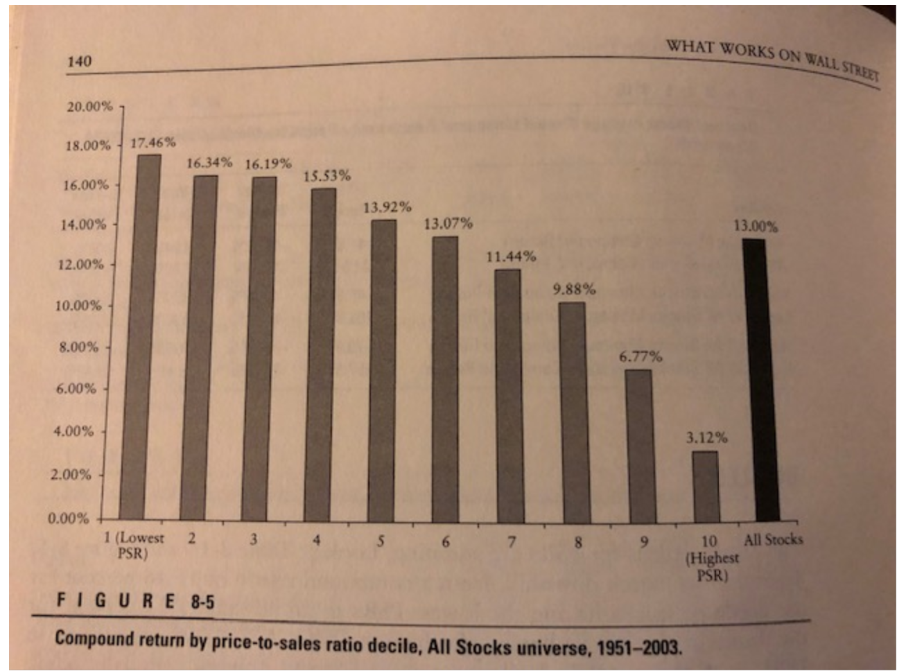 Tutkimuksissa siis jaetaan ihmisiä (yrityksiä) viljan (P/S-suhteen) käytön (suuruuden) mukaan ja tässä on ihan kiistatonta, että ne (osakkeet), jotka syövät enemmän täysjyväviljaa (omaavat alhaisemman PS-suhteen), ovat terveempiä (parempia sijoituksia) kuin ne, jotka syövät vähemmän (omaavat suuremman P/S-suhteen).”
