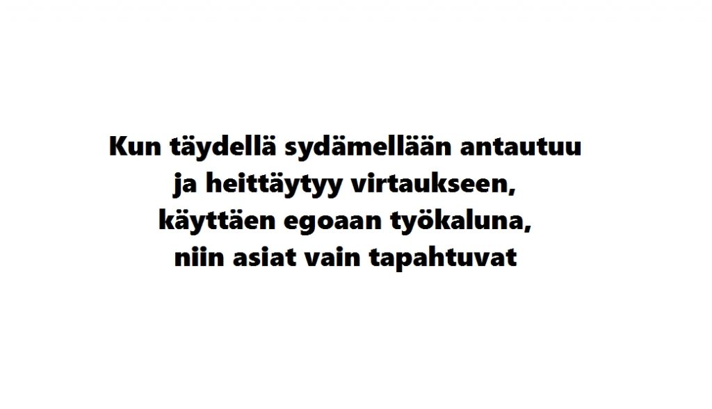 Se, mikä on tarkoitettu tapahtuvaksi, tapahtuu joka tapauksessa. Ja jos pitää kiinni itselleen epäsopivasta vaihtoehdosta, niin voi olla varma että se vie todella rajusti epämukavuusalueelle. Kun täydellä sydämellään antautuu ja heittäytyy virtaukseen, käyttäen egoaan työkaluna, niin asiat vain tapahtuvat. Ego tuo oikein käytettynä sen draivin tekemiseen, olemiseen ja asioiden mahdollistamiseen kaikilla osa-alueilla. Ja silloin olemme mukavuusalueella, jossa voimme nauttia runsaudesta ja syntyy myös tuloksia, jotka palvelevet laajempaa joukkoa.